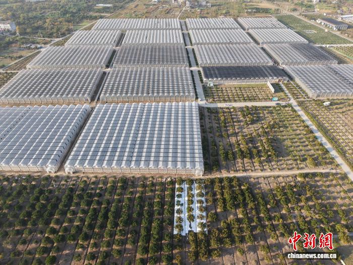 11月26日,鸟瞰黄岩蜜橘种源研讨要旨。暮秋节令,浙江台州黄岩蜜橘迎去丰产季。中新社收 孙杨洋摄