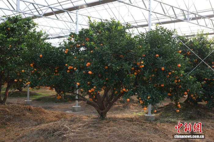 11月26日,黄岩蜜橘种源钻研中央,金黄的果真挂谦枝端。暮秋节令,浙江台州黄岩蜜橘迎去丰产季。中新社收 孙杨洋摄